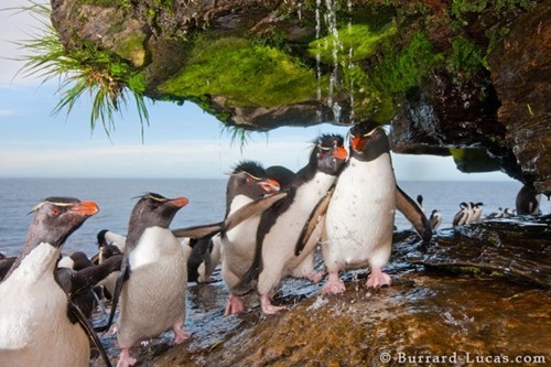 **Look At These Showering Penguins of the Day: **Rockhopper penguins in the Falkland Islands look like they’ve had it with this group shower situation.